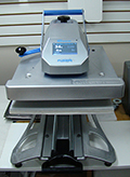 This is the heat press that we use to permanently adhere vinyl to apparel, or temporarily place name bars and logos before sewing.