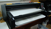 This is the heat press that we use to permanently adhere vinyl to apparel, or temporarily place name bars and logos before sewing.